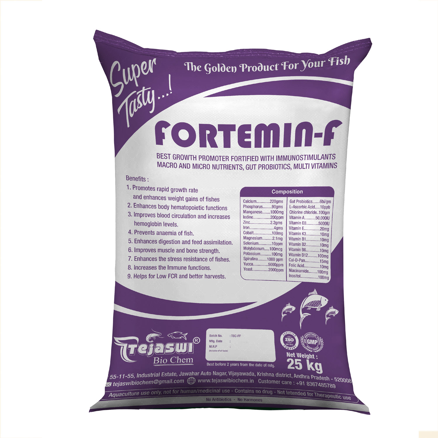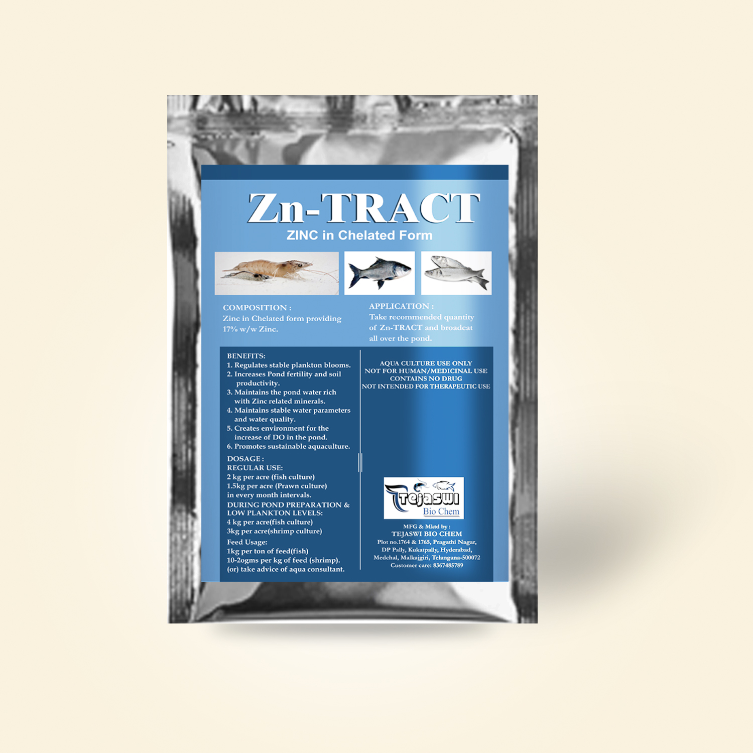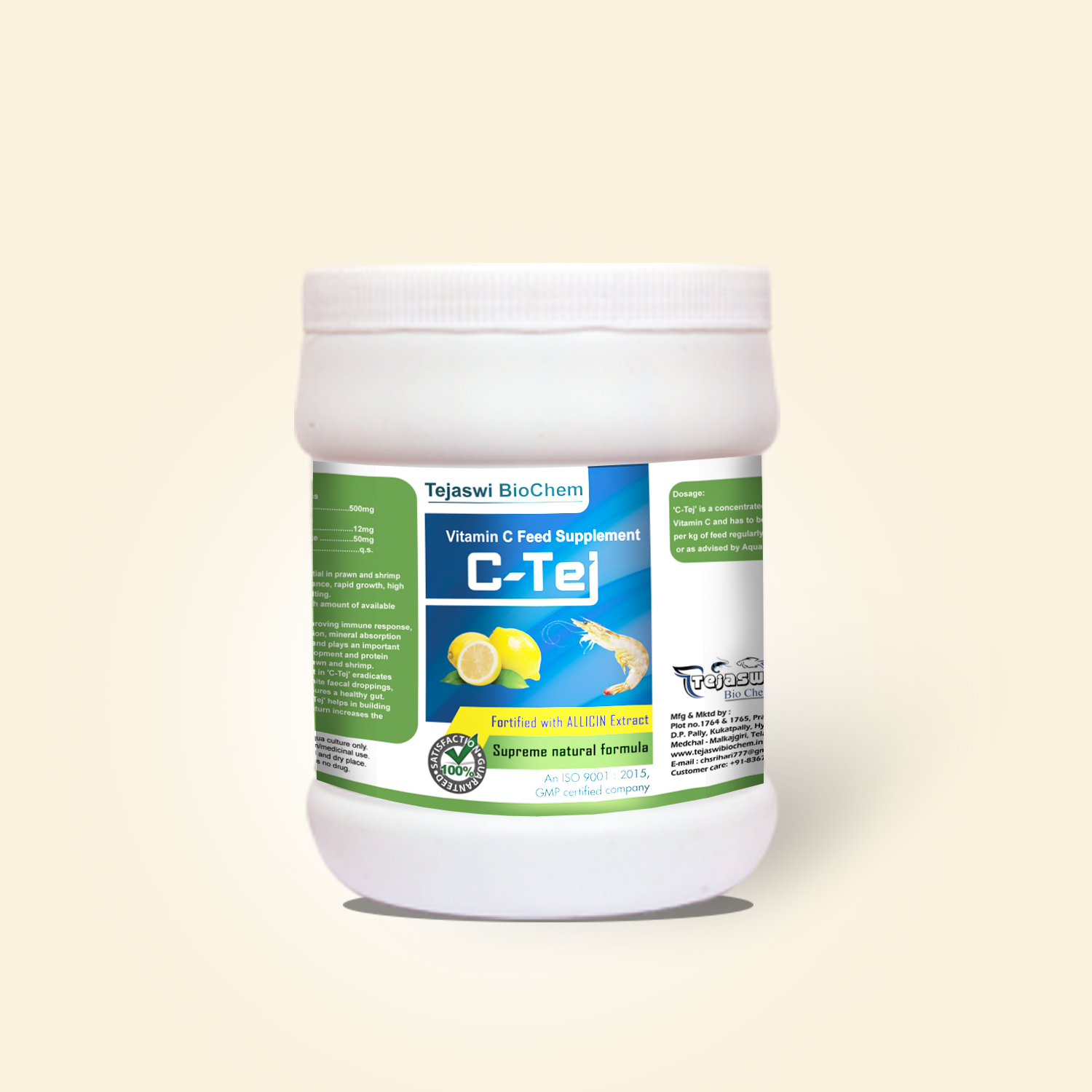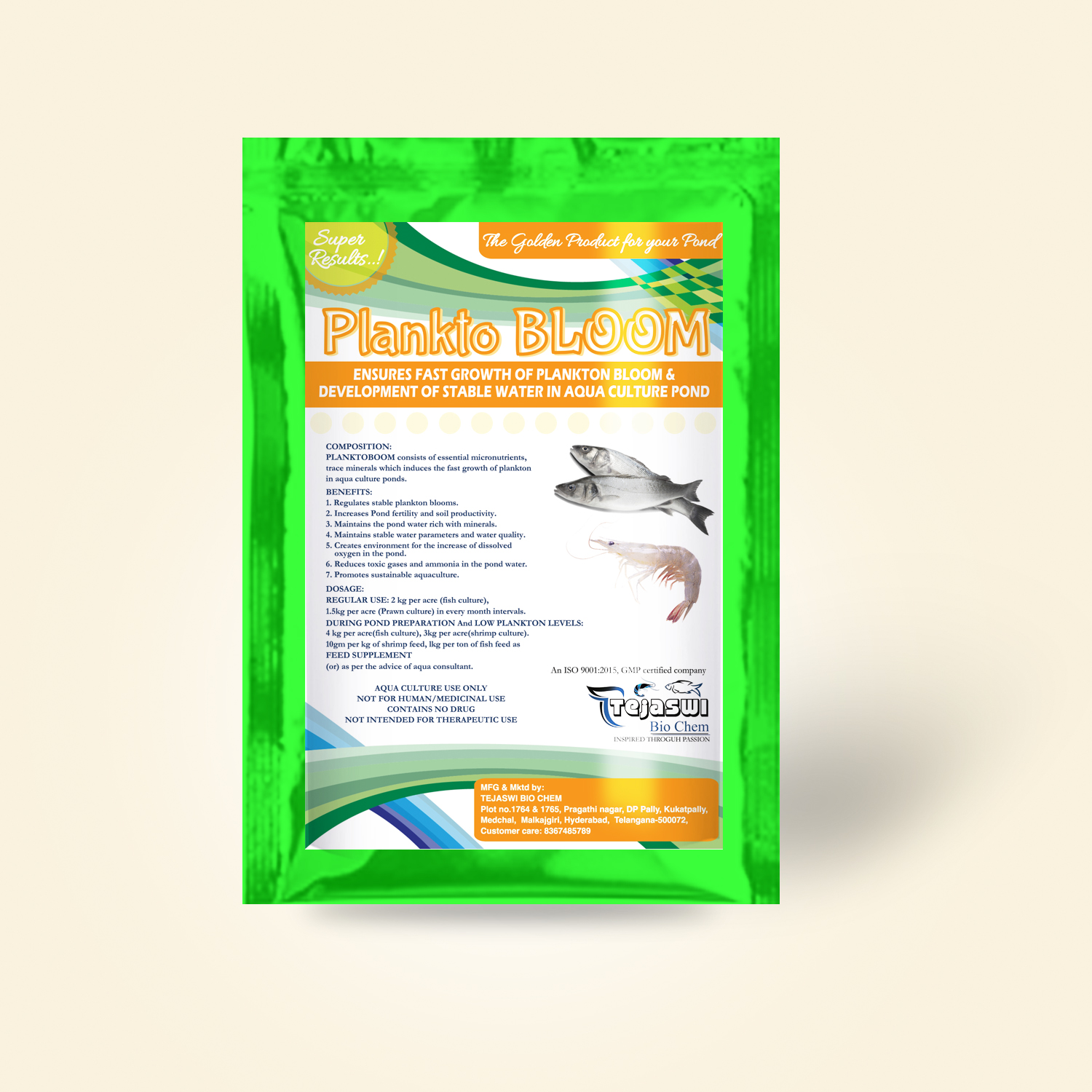 The Tejaswi Bio Chem is a leading manufacturer of high quality shrimp&fish feed supplemts company[Growth promoters,feed supplements,Minerals,Immuno Stimulants,Probioties,Anti-pollutants,Sanitizers,oxygen Developers]